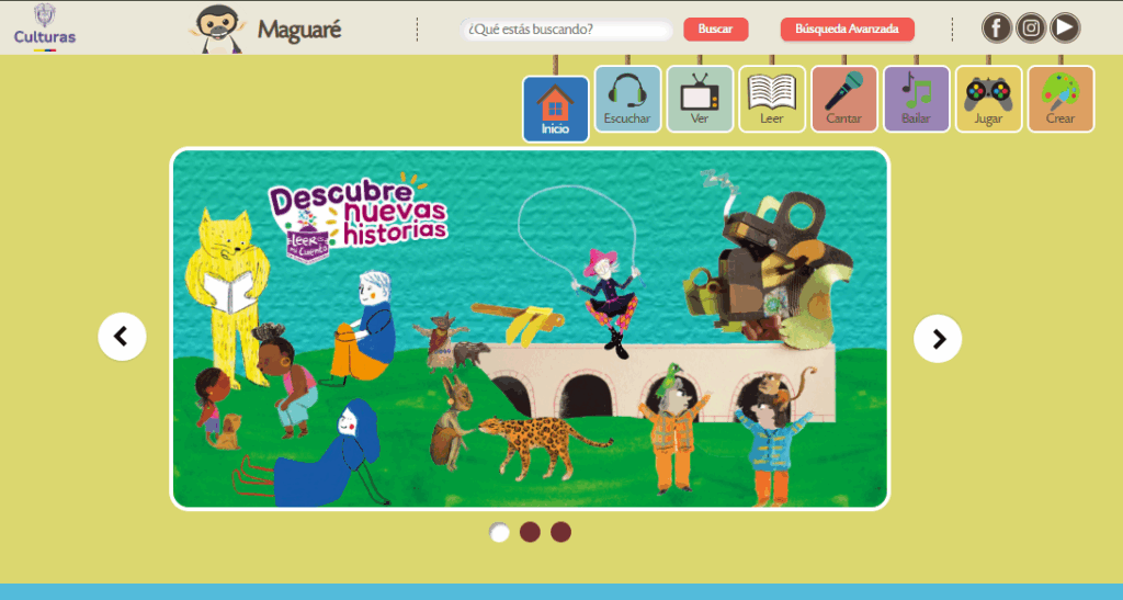 Descripción: Maguaré, descubre imagina y crea, portal infantil de la Estrategia Digital de Cultura y Primera Infancia del Ministerio de Cultura de Colombia.